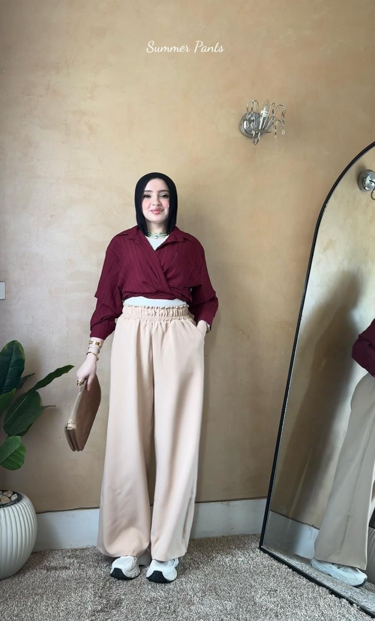 \n 7Wide Leg Pants 🤍 – بنطلون قصّة واسعة بعرض خاص \n \nاستمتعي بإطلالة عصرية وأنيقة مع Wide Leg Pants المصنوع من خامة روزالين المستورد الفاخرة، الآن بسعر 580 ج بدلاً من 650 ج لفترة محدودة! ⚠ \nالمواصفات \nالخامة: روزالين مستورد ناعم ومطاطي خفيف \nطول البنطلون: 105 سم \nالألوان المتاحة: بني، بيج، زيتي، رمادي، أبيض، أسود \nالمقاسات: من \nM حتى XLالتصميم: وسط عالي مع ساق واسعة لتوفير حركة مريحه ؟ \n